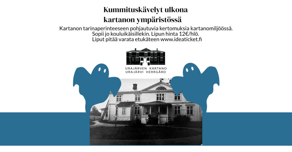 Kartanon tarinaperinteeseen pohjautuvia kertomuksia kartanomiljöössä. Sopii jo kouluikäisillekin. Lipun hinta 12€/hlö. Liput pitää varata etukäteen www.ideaticket.fi/Urajarvenkartano .